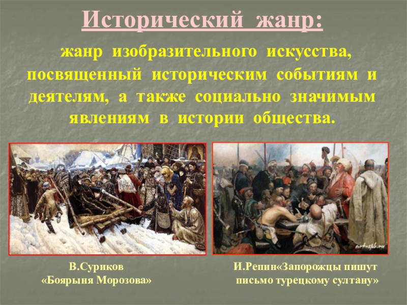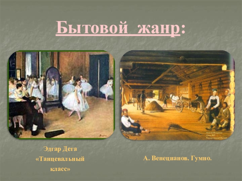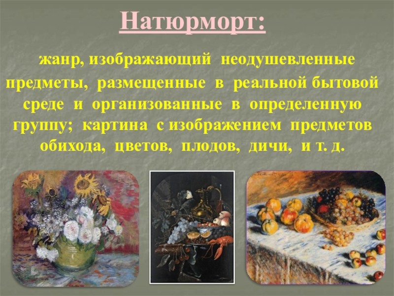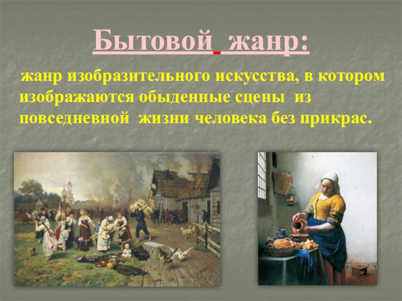 Жанр представляет собой исторически сложившееся деление произведений живописи в соответствии с темой и объектом изображения.