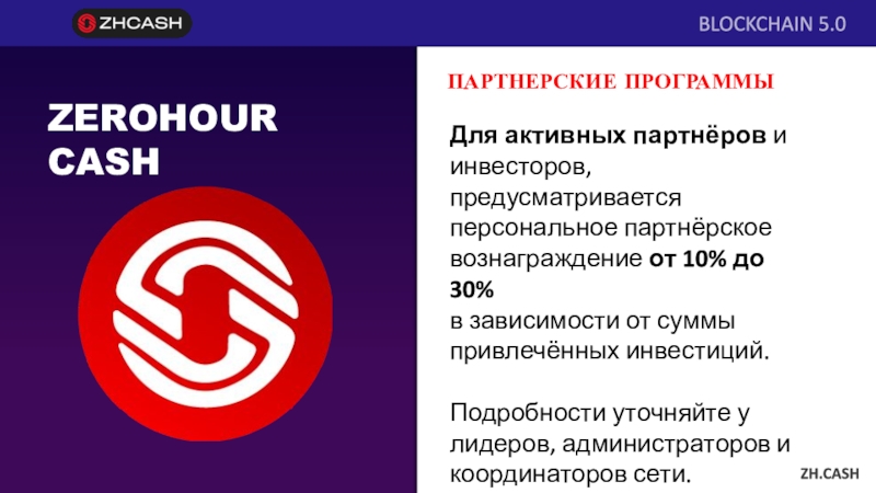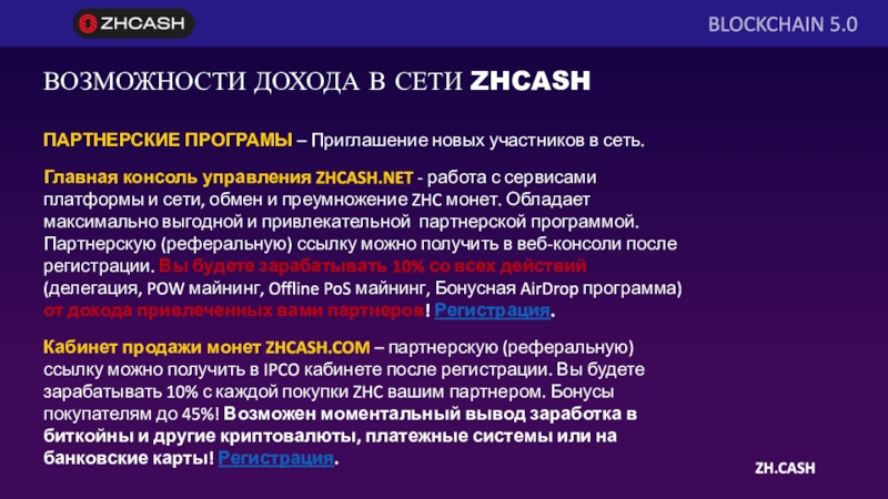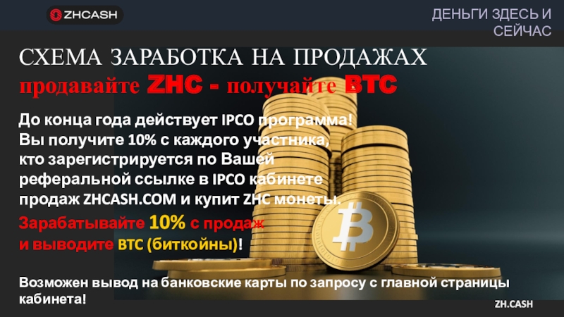 Кабинет продажи монет ZHCASH.COM – партнерскую (реферальную) ссылку можно получить в IPCO кабинете после регистрации. Вы будете зарабатывать 10% с каждой покупки ZHC вашим партнером. Бонусы покупателям до 45%! Возможен моментальный вывод заработка в биткойны и другие криптовалюты, платежные системы или на банковские карты! Регистрация.