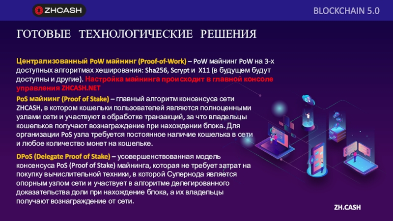 PoS майнинг (Proof of Stake) – главный алгоритм консенсуса сети ZHCASH, в котором кошельки пользователей являются полноценными узлами сети и участвуют в обработке транзакций, за что владельцы кошельков получают вознаграждение при нахождении блока. Для организации PoS узла требуется постоянное наличие кошелька в сети и любое количество монет на кошельке.