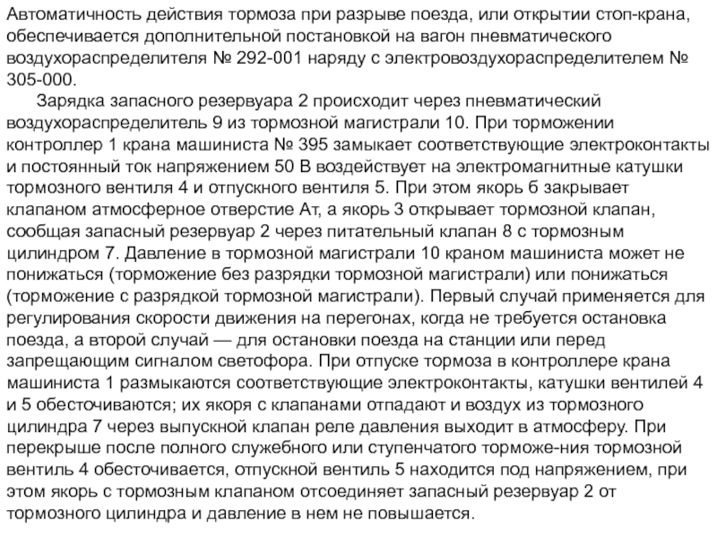 При открытии стоп-крана МРТ действует без возбуждения реле РЭ и отключается при скорости движения ниже 40 км/ч.
