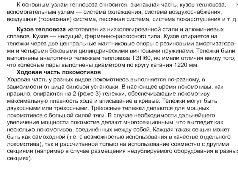 Современные локомотивы приспособлены к работе в составе двух, трех, четырех секций с возможностью управления из кабины любой головной секции одной ло-комотивной бригадой. Это позволяет варьировать мощность в зависимости от массы поезда и водить поезда массой до 10 тыс. т и более.