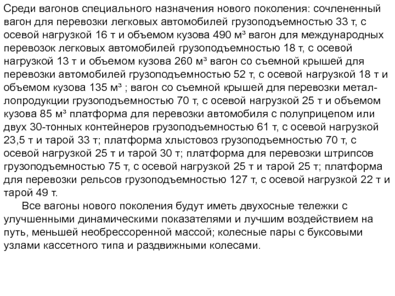 Слайд 81 Грузоподъемность вагонов нового поколения составит 71—75 т;