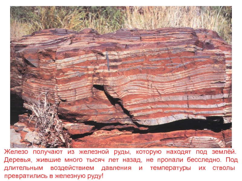 Железо получают из железной руды, которую находят под землёй. Деревья, жившие много тысяч лет назад, не пропали