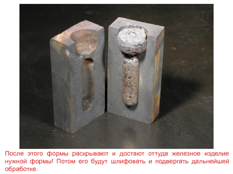 Слайд 14После этого формы раскрывают и достают оттуда железное изделие нужной