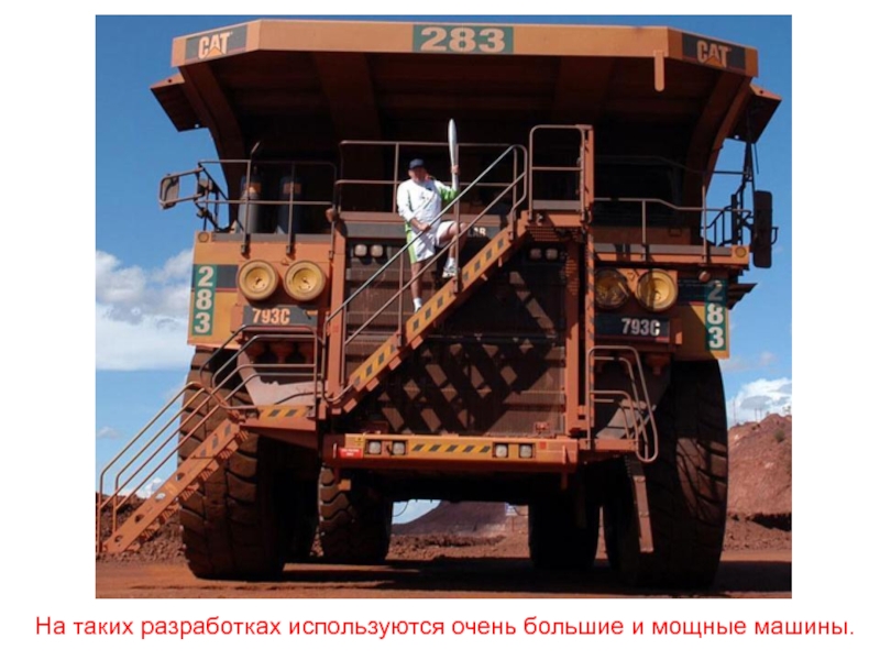 Слайд 6На таких разработках используются очень большие и мощные машины.