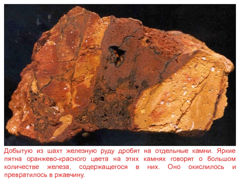 Слайд 7Добытую из шахт железную руду дробят на отдельные камни. Яркие