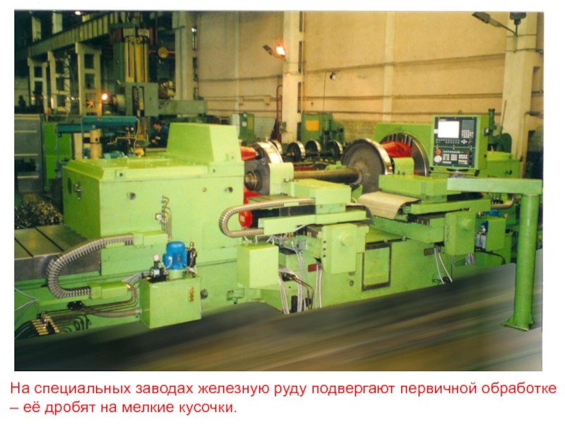 Слайд 10На специальных заводах железную руду подвергают первичной обработке – её