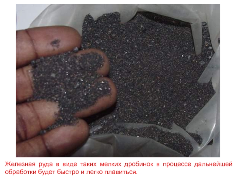 Слайд 11Железная руда в виде таких мелких дробинок в процессе дальнейшей