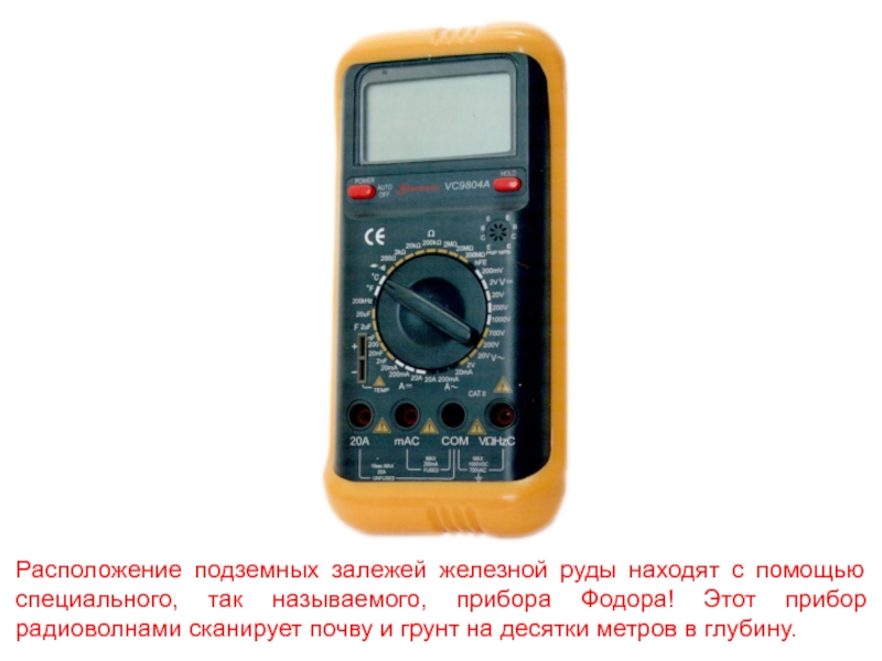 Расположение подземных залежей железной руды находят с помощью специального, так называемого, прибора Фодора! Этот прибор радиоволнами сканирует