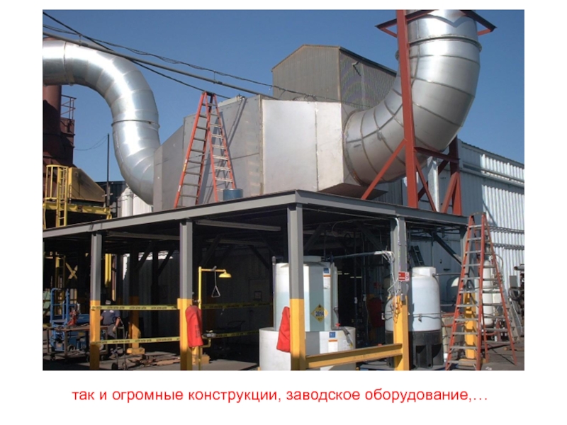 Слайд 19так и огромные конструкции, заводское оборудование,…