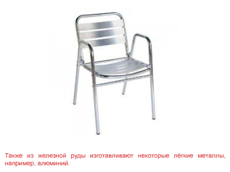 Слайд 16Также из железной руды изготавливают некоторые лёгкие металлы, например, алюминий.