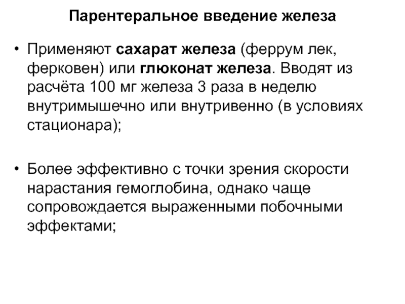 Слайд 46Парентеральное введение железа