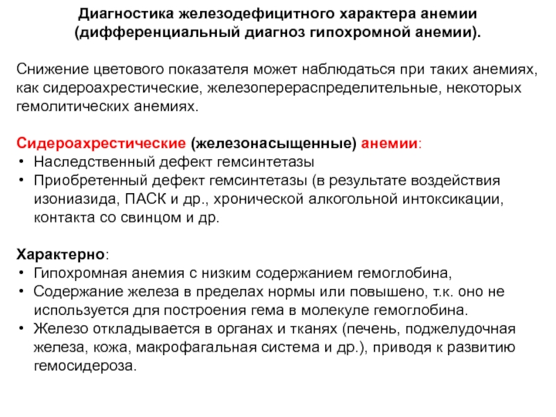 процессов, и проявляющийся признаками гипохромной микроцитарной анемии и сидеропении.