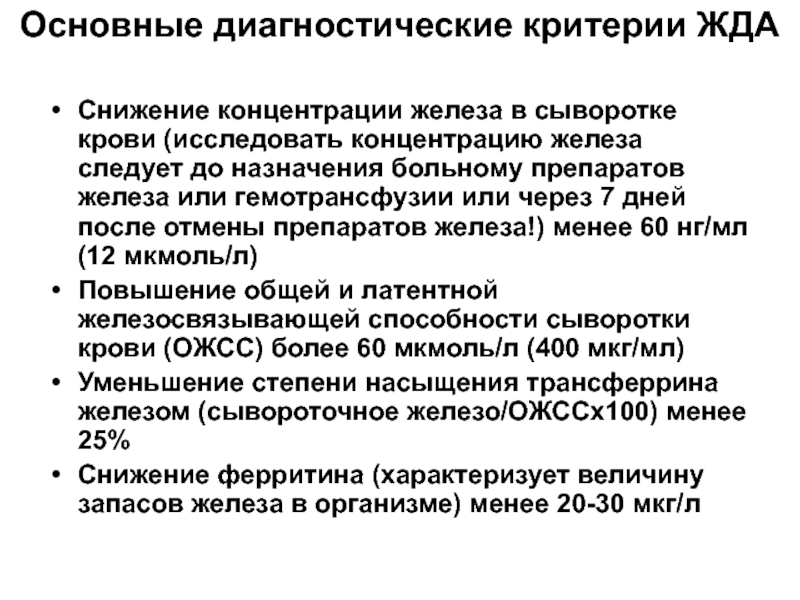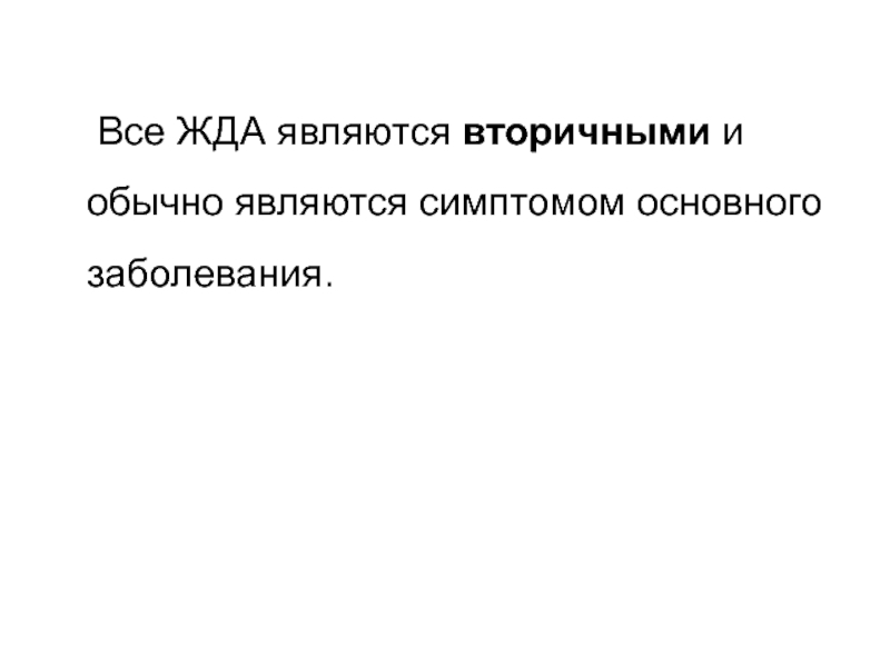 Слайд 14 Все ЖДА являются вторичными и обычно являются симптомом основного заболевания.