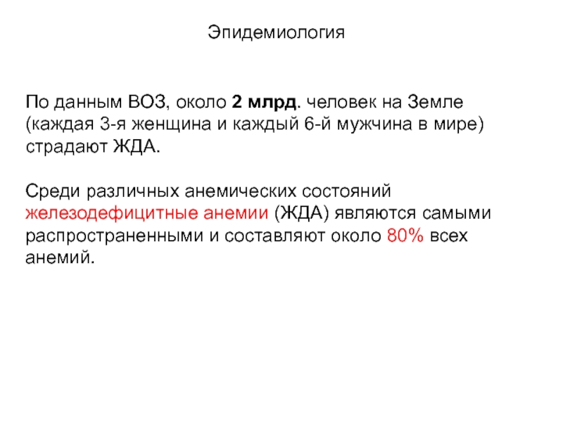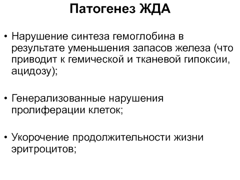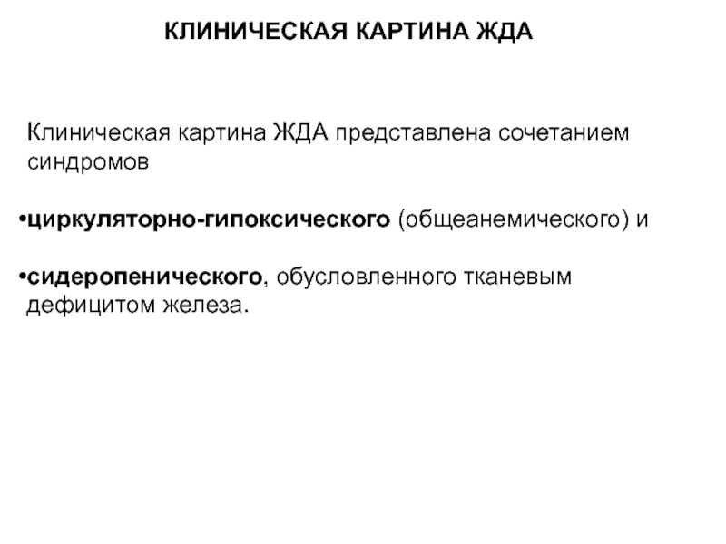 Слайд 10Железодефицитная анемия (ЖДА) – клинико–гематологический синдром, характеризующийся нарушением синтеза гема