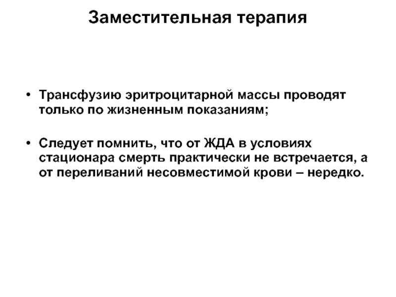 Трансфузию эритроцитарной массы проводят только по жизненным показаниям;