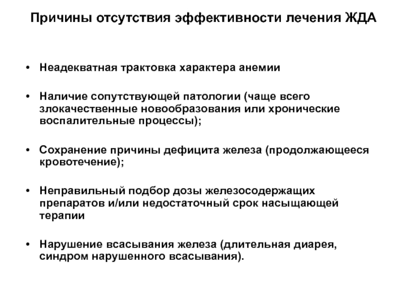 Слайд 51Причины отсутствия эффективности лечения ЖДА