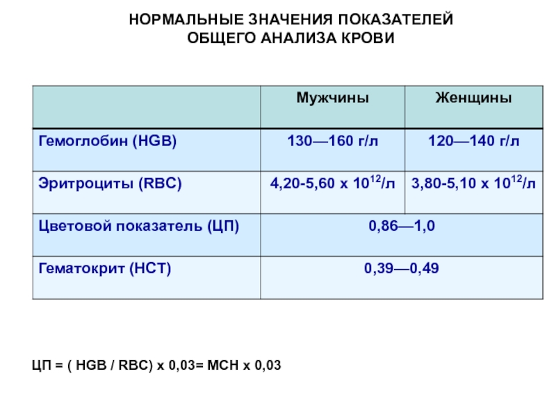 Слайд 11НОРМАЛЬНЫЕ ЗНАЧЕНИЯ ПОКАЗАТЕЛЕЙ