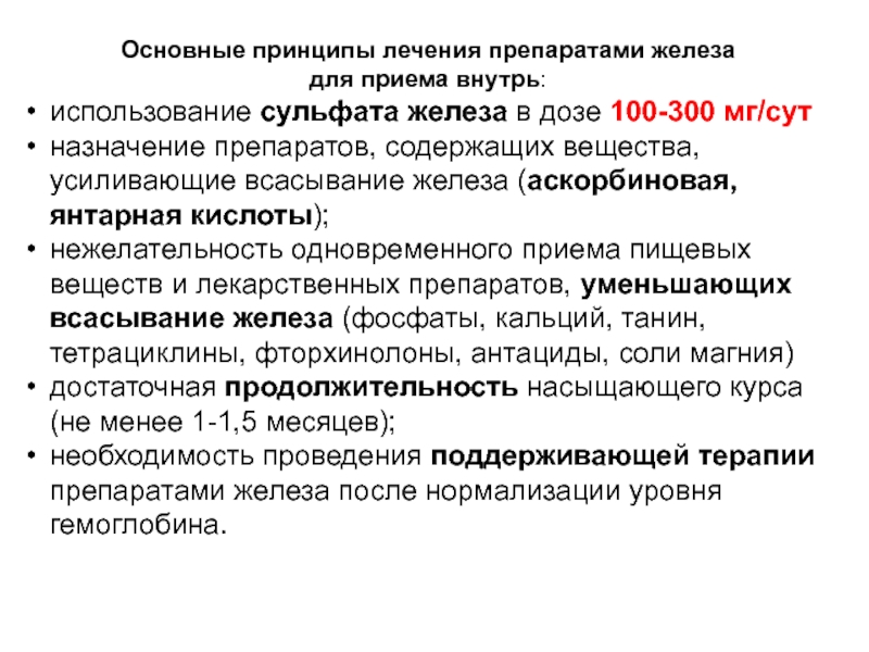 Слайд 42Основные принципы лечения препаратами железа