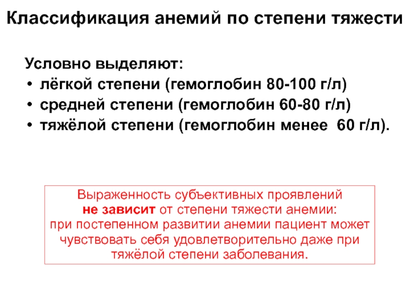Слайд 12Классификация анемий по степени тяжести