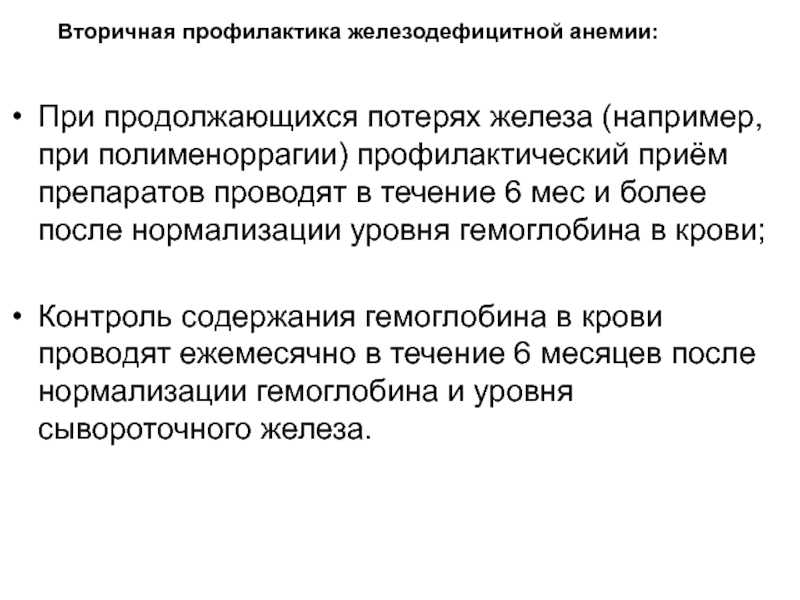Вторичная профилактика железодефицитной анемии: