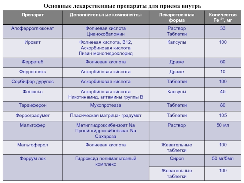 Слайд 49Основные лекарственные препараты для приема внутрь