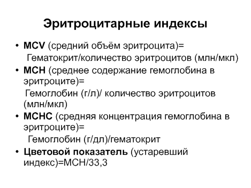 Слайд 8Эритроцитарные индексы