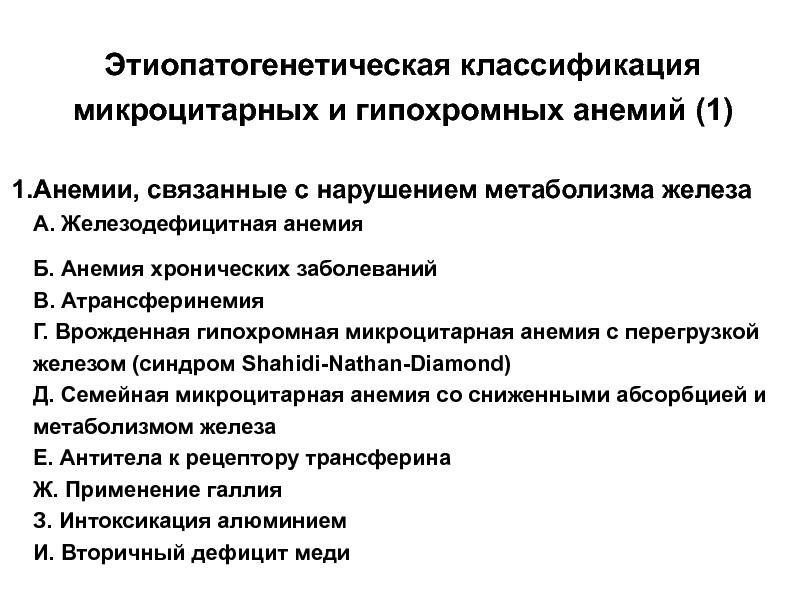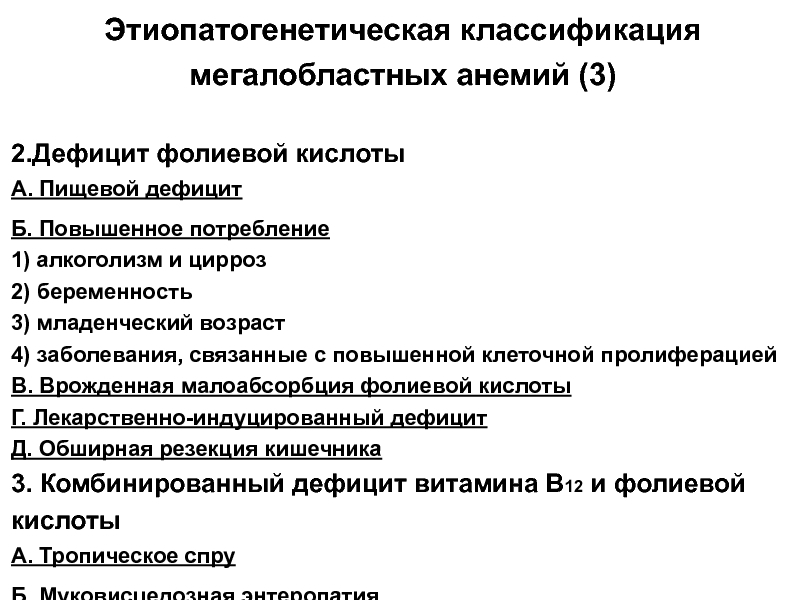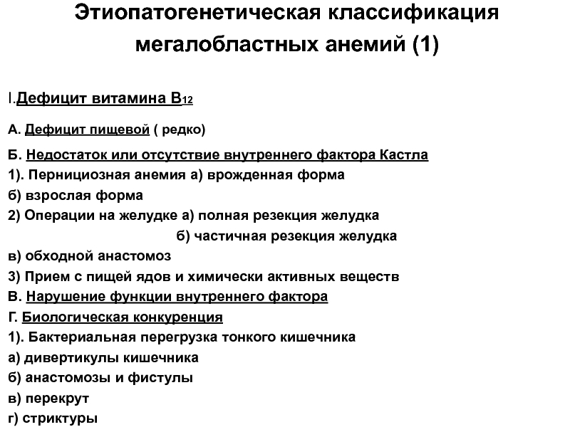 Слайд 13Этиопатогенетическая классификация мегалобластных анемий (1)