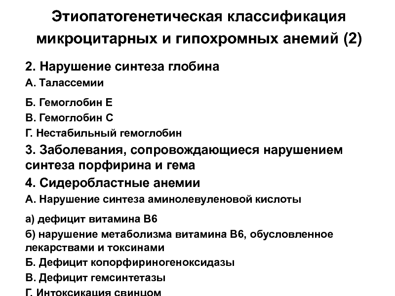 2). Анемии, обусловленные неэффективным эритропоэзом