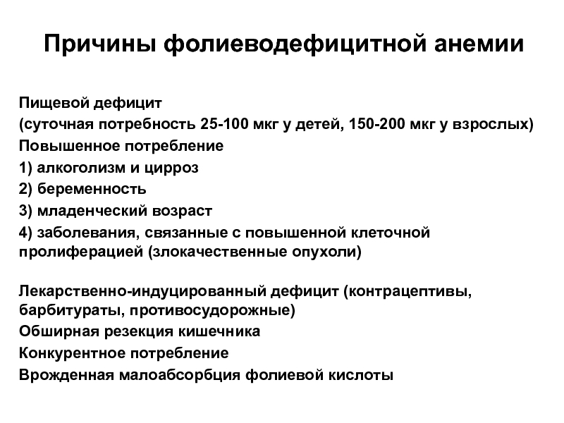 Лекарственно-индуцированный дефицит (контрацептивы, барбитураты, противосудорожные)