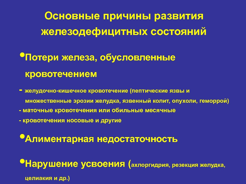 из-за кровопотери, нарушения продукции, повышенного разрушения или их сочетания.