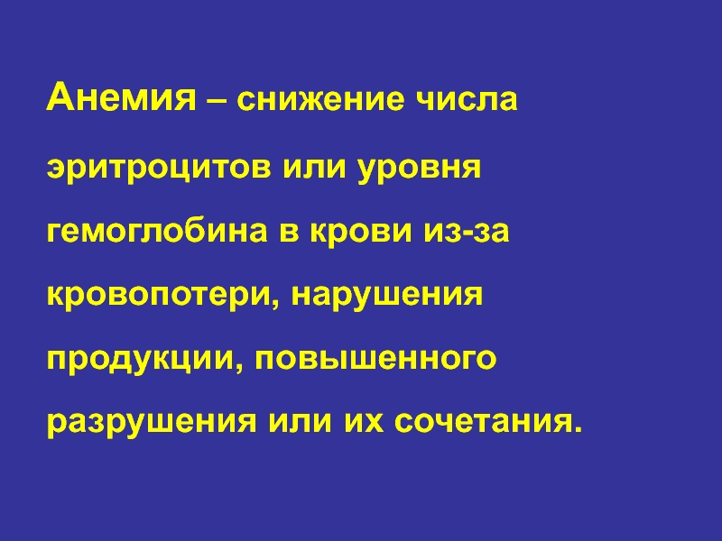 Слайд 2Анемия – снижение числа эритроцитов или уровня гемоглобина в крови
