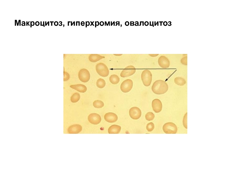 Слайд 84Макроцитоз, гиперхромия, овалоцитоз
