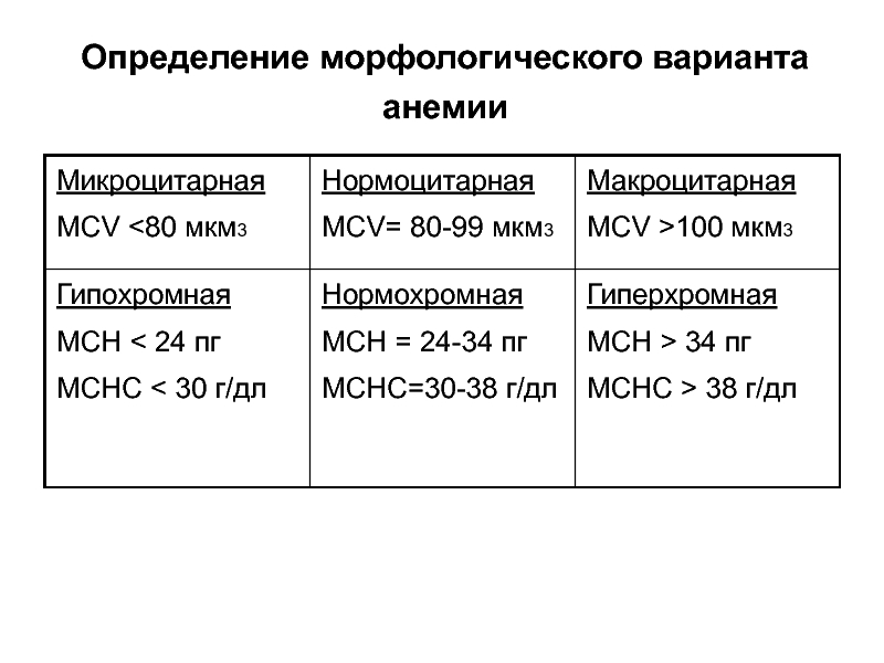 < 11 г/дл (Ht < 33%) у женщин до менопаузы