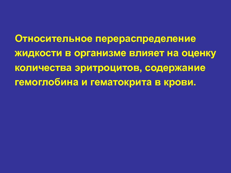 Относительное перераспределение жидкости в организме влияет на оценку количества эритроцитов,