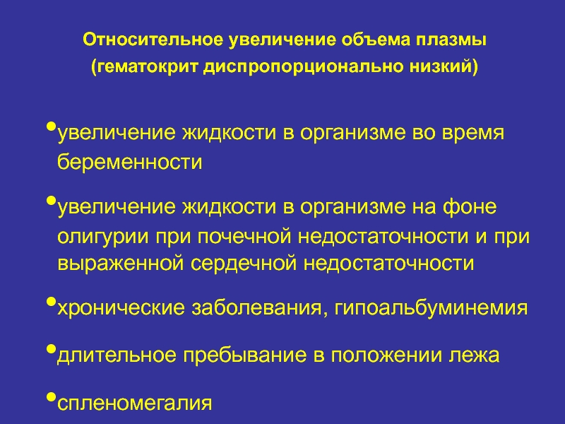 Слайд 6Относительное увеличение объема плазмы (гематокрит диспропорционально низкий)
