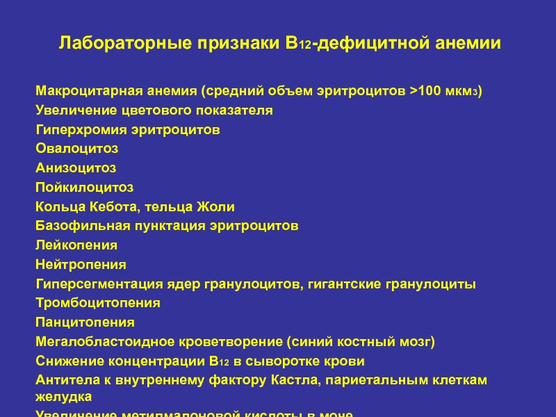 Слайд 83Лабораторные признаки В12-дефицитной анемии
