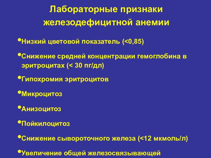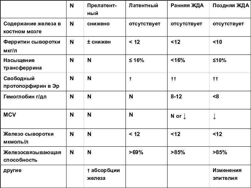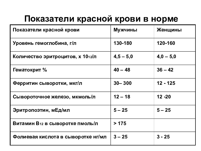 < 11 г/дл (Ht < 33%) у женщин до менопаузы