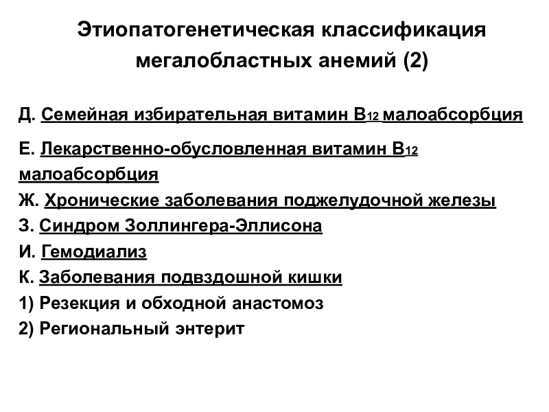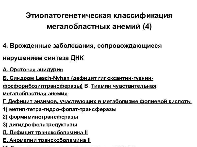 Слайд 13Этиопатогенетическая классификация мегалобластных анемий (1)