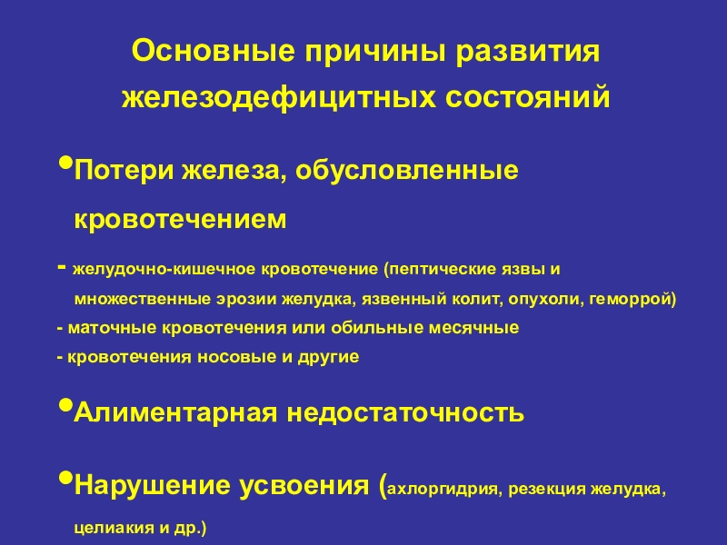 из-за кровопотери, нарушения продукции, повышенного разрушения или их сочетания.
