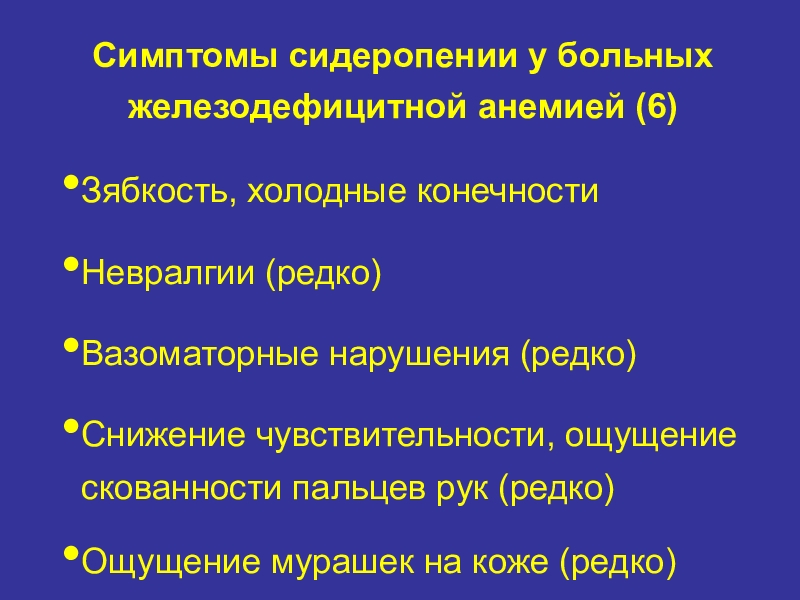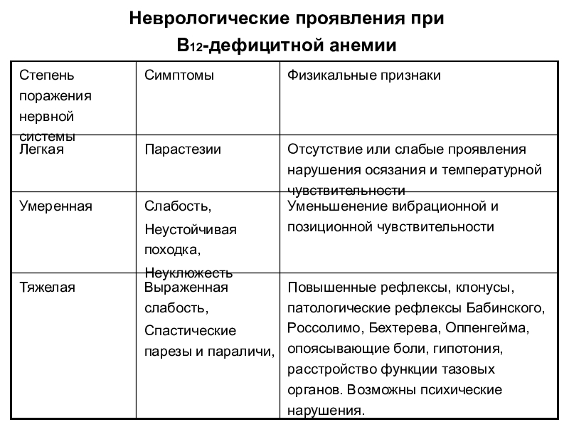 Симптомы анемии и поражения нервной системы (фуникулярный
