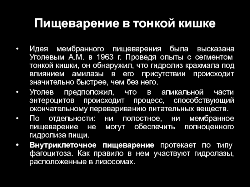 Идея мембранного пищеварения была высказана Уголевым А.М.