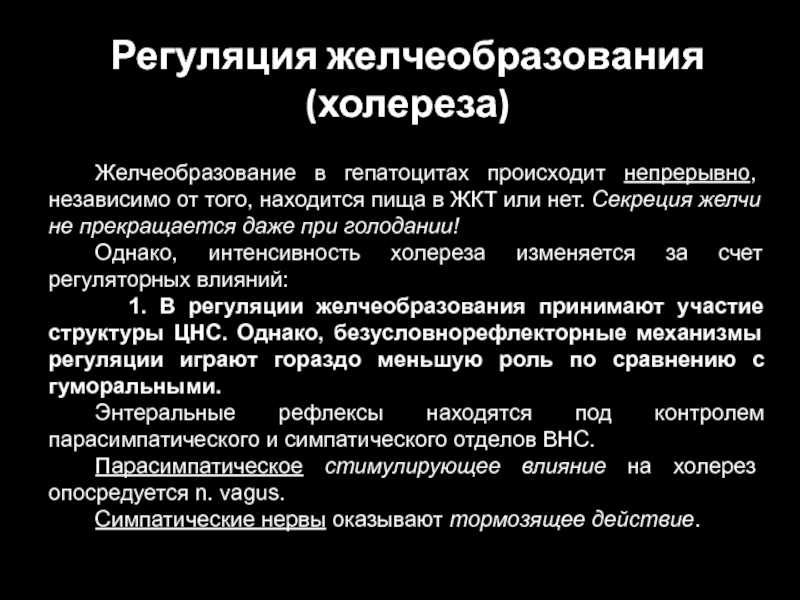 Возбуждающие и тормозные влияния на желудочную секрецию носят корригирующий характер и определяются составом химуса, поступающего в тонкий кишечник.