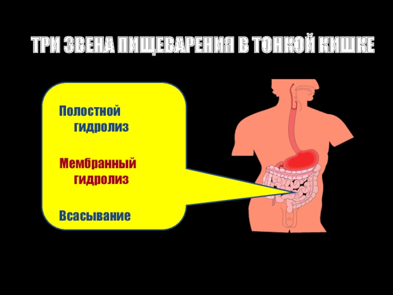 Слайд 97ТРИ ЗВЕНА ПИЩЕВАРЕНИЯ В ТОНКОЙ КИШКЕ
