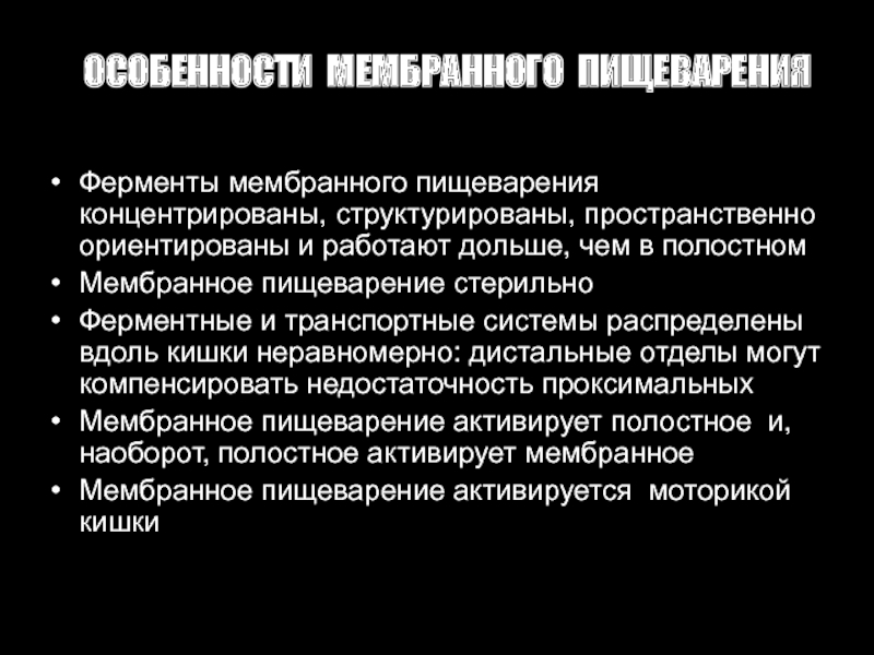 Слайд 105ОСОБЕННОСТИ МЕМБРАННОГО ПИЩЕВАРЕНИЯ
