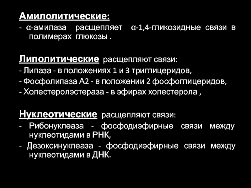 Амилолитические ферменты кишечного сока: амилаза, лактаза, сахараза.