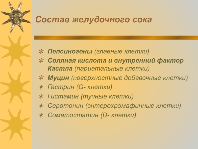 (активация главных, париетальных, добавочных, тучных, энтерохромафинных