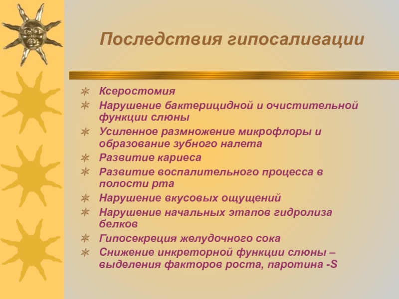 Снижение инкреторной функции слюны – выделения факторов роста, паротина -S
