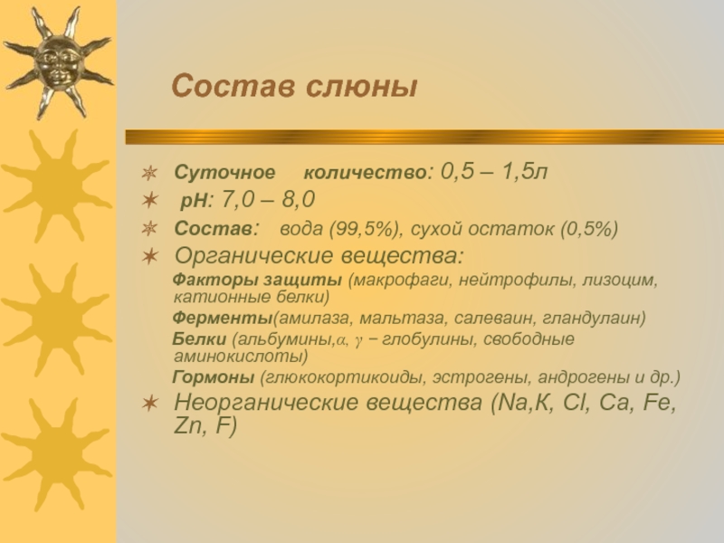 Ферменты(амилаза, мальтаза, салеваин, гландулаин)