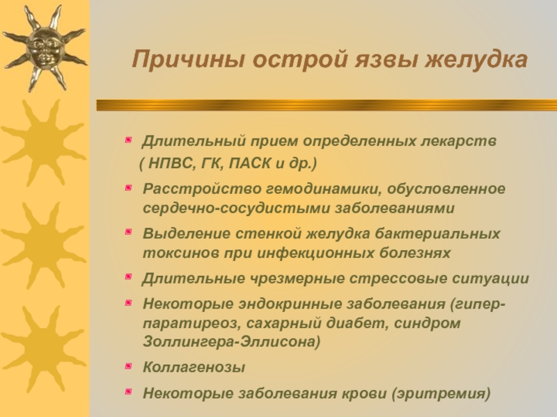 Некоторые эндокринные заболевания (гипер-паратиреоз, сахарный диабет, синдром Золлингера-Эллисона)